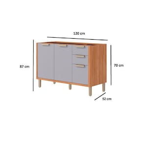 Gabinete de Cozinha Modulado Balcão s/ Tampo Eloise c/ 2 Portas e 3 Gavetas 120cm Cinamomo/Off White - MGM - Blush