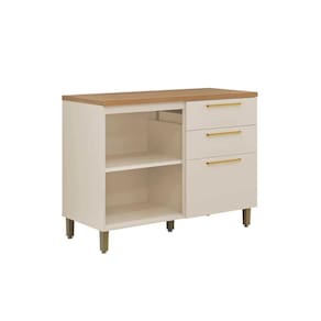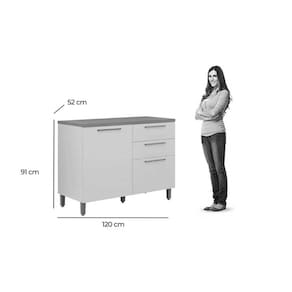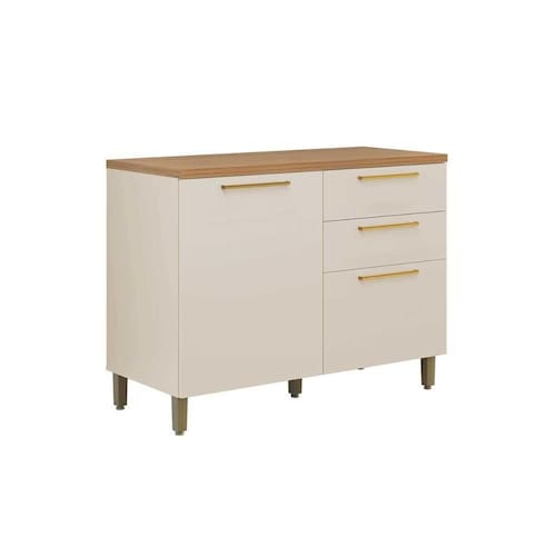 Balcão de Cozinha c/ Tampo Atena c/ 1 Porta e 3 Gavetas 120cm Jequitiba/Off White Fosco - Linea Brasil