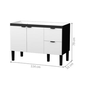 Estrutura em Aço em eletrogalvanizado. Possui 2 portas, 2 gavetas com corrediças telescópicas e divisor de talheres.