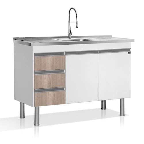 Gabinete - Medida: 114 x 51,5 x 63 cm - Pés em polipropileno (PP) - Puxador em perfil anodizado - Corrediças metálicas (400mm) - MDF 15mm TX Branco - Bordas em PVC - Gavetas revestidas em PET, que garantem um perfeito acabamento - Dobradiça sem pistão.