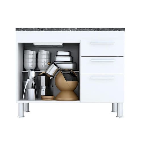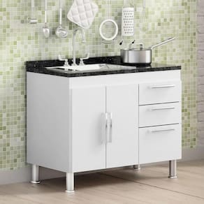 Gabinete De Pia 1 Metro Branco 2 Portas 3 Gavetas 94Cm Gemeo