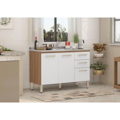 Características: Material da Estrutura: MDP Acabamento: Pintura UV Escala de Brilho: Fosco Possui 3 portas Possui 2 gavetas Possui 1 prateleira Dobradiças em aço Puxadores na cor champanhe Pés em PVC com rosca Corrediças telescópica Design moderno Acompanha Tampo: Não