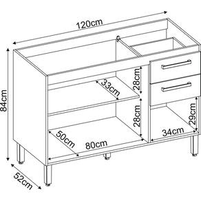 Medidas do Produto Montado: A: 84 cm L: 119 cm P: 52 cm Peso: 32 kg