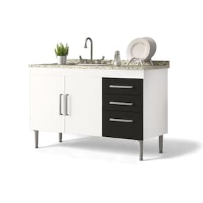 GABINETE PARA PIA | Este gabinete é produzido especialmente para pias de 1,20m, possui 3 gavetas com corrediças metalicas para melhor armazenar os itens de cozinha e conta com uma prateleira profunda completa no seu interior. Possui puxadores modernos e 5 pés para evitar empenamento da base, o gabinete é totalmente fabricado em MDP de 12mm, aumentando a durabilidade, resistencia e qualidade do produto. O gabinete NAO acompanha o tampo da imagem. Além desses detalhes possui uma facil montagem.