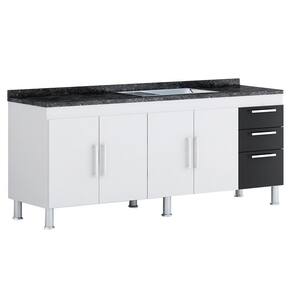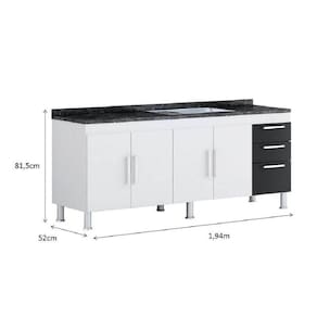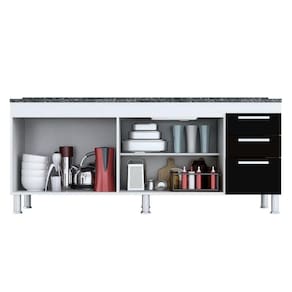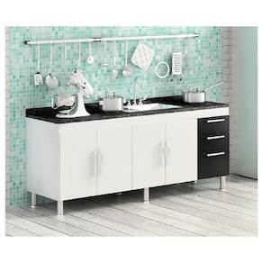 Este gabinete é produzido especialmente para pias de 2m, possui 3 gavetas com corrediças metálicas para melhor armazenar os itens de cozinha e conta com uma prateleira profunda completa no seu interior. Possui puxadores modernos e 5 pés para evitar empenamento da base, o gabinete é totalmente fabricado em MDP de 12mm, aumentando a durabilidade, resistência e qualidade do produto. O gabinete NÃO ACOMPANHA o tampo da imagem. Além desses detalhes possui uma fácil montagem.
