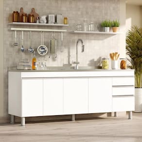 O Gabinete Libra 1,80m é perfeito para quem busca organização, funcionalidade e design moderno. Com portas amplas, prateleiras internas resistentes e acabamento de alta qualidade, ele oferece espaço suficiente para armazenar panelas, utensílios, mantimentos e acessórios de cozinha, deixando tudo sempre à mão e organizado.