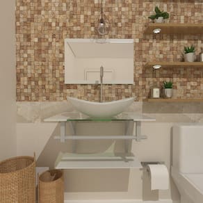 - bancada de vidro com furo para torneira (3,5cm diâmetro) e válvula click (4,5cm diâmetro);