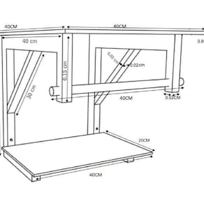 - prateleira bancada: 40 x 20cm (largura x profundidade)