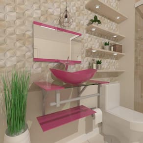 Gabinete de vidro 40cm ac com cuba oval rosa Os nossos gabinetes são indicados para projetos arrojados e de muito bom gosto, além de valorizar o seu ambiente com sofisticação em uma decoração de alto padrão, ele consegue usufruir das vantagens que o vidro proporciona e gerar uma durabilidade indiscutível, sem contar que com as várias opções de cores, você sempre poderá encontrar uma cor perfeita para o seu banheiro. Os vidros são pintados com tinta de alta performance o que lhe garante a permanência da cor original.