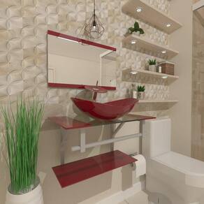 Gabinete de vidro 40cm ac com cuba oval vermelho cereja Os nossos gabinetes são indicados para projetos arrojados e de muito bom gosto, além de valorizar o seu ambiente com sofisticação em uma decoração de alto padrão, ele consegue usufruir das vantagens que o vidro proporciona e gerar uma durabilidade indiscutível, sem contar que com as várias opções de cores, você sempre poderá encontrar uma cor perfeita para o seu banheiro. Itens inclusos: - bancada de vidro com furo para torneira 3,5cm diâmetro e válvula click 4,5cm diâmetro ; - cuba de vidro oval; - espelho; - estrutura e porta toalha de aço carbono com pintura eletrostática cinza; - kit parafusos completo para instalação; - prateleira de vidro da bancada; - válvula click. Dimensões: - bancada de vidro: 40 x 40cm largura x profundidade - cuba de vidro oval: 38 x 26cm comprimento x profundidade - prateleira bancada: 40 x 20cm largura x profundidade - espelheira: 40 x 40cm largura x altura - porta toalha: 40cm largura - válvula: 1 1/4 Espessuras: - bancada de vidro: 8 mm - cuba de vidro: 10 mm - prateleira bancada: 5 mm - espelheira: 3 mm : 12 meses conforme política de troca e devoluções . Atenção: preço referente somente ao gabinete, não acompanha torneira, sifão e acessórios. Montagem: montagem e instalação não inclusa na venda ou preço do produto, elas são de inteira responsabilidade do cliente. Imagens ilustrativas. Ean: 7909752162208