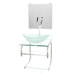 Este gabinete é composto por: - Bancada de vidro com furo para instalação da torneira 3,5cm de diâmetro e da válvula click 4,5cm de diâmetro . - Cuba de vidro oval jateada. - Espelho. - Estrutura e porta toalha de inox, ultra resistente à umidade e não enferruja. - Kit completo de parafusos para instalação. - Prateleira de vidro para a bancada. - Válvula click.