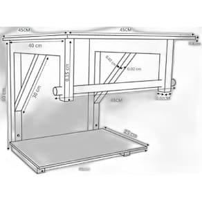 Dimensões: - Bancada de Vidro: 45 x 45 cm largura x profundidade - Cuba de Vidro Quadrada: 35X35 cm largura x cumprimento - Prateleira Bancada: 45 x 25 cm largura x profundidade - Espelheira: 45 x 45 cm largura x altura - Porta Toalha: 45 cm largura - Válvula
