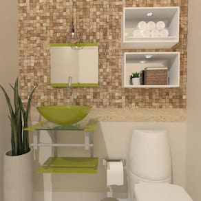 Espessuras: - Bancada de Vidro: 8 mm - Cuba de Vidro: 10 mm - Prateleira Bancada: 6 mm - Espelheira: 4 mm