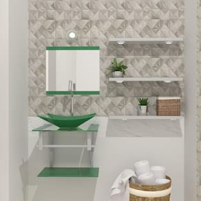 Combo 2 em 1 gabinete de vidro 45cm ac com cuba retangular - verde + torneira algarve Super combo 2 em 1, tudo que o seu banheiro precisa, são 2 produtos em uma única compra: 01 gabinete de vidro 45cm para banheiro bielorrússia ac; 01 torneira metal bica alta algarve Mais fácil, mais rápido e mais barato. Dados técnicos Dados técnicos do gabinete Itens inclusos: gabinete de vidro 45 cm para banheiro composto de bancada de vidro, cuba de vidro, prateleira da bancada, espelheira,válvula, estrutura e porta toalha de aço eletrostático e kit parafusos completo para instalação. Dimensões: - bancada de vidro: 45 x 45 cm largura x profundidade - cuba de vidro retangular: 39x32 cm largura x cumprimento - prateleira bancada: 45 x 25 cm largura x profundidade - espelheira: 45 x 45 cm largura x altura - porta toalha: 45 cm largura - válvula Espessuras: - bancada de vidro: 8 mm - cuba de vidro: 10 mm - prateleira bancada: 6 mm - espelheira: 3 mm Itens inclusos: 01 torneira cromada Material: liga metálica cromada Conexão de entrada: 1/2 polegada -1/4 volta Altura total da torneira: 37 cm. Altura da queda dágua: 27 cm. : 12 meses conforme política de troca e devoluções . Pressão mínima da água: recomenda-se uma pressão de pelo menos 6mtc metros de coluna dágua para melhor performance do produto. Montagem: montagem e instalação não inclusa na venda ou preço do produto, elas são de inteira responsabilidade do cliente. Imagens ilustrativas. Marca: Não Informado Ean: 7908241961865
