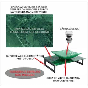 Gabinete De Vidro 50cm Com Cuba Quadrada - Mármore Verde