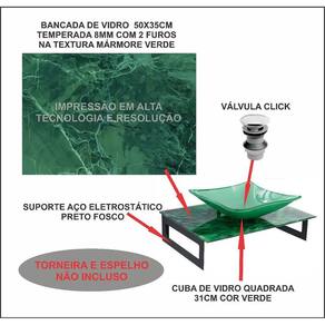 Dimensões: - bancada de vidro: 50cm x 35cm largura x profundidade - cuba de vidro quadrada: 31cm - válvula: 1 1/4