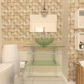 Gabinete de Vidro para Banheiro 60cm Com Cuba Redonda AC Os nossos gabinetes são indicados para projetos arrojados e de muito bom gosto, além de valorizar o seu ambiente com sofisticação em uma decoração de alto padrão, ele consegue usufruir das vantagens que o vidro proporciona e gerar uma durabilidade indiscutível, sem contar que com as várias opções de cores, você sempre poderá encontrar uma cor perfeita para o seu banheiro. Dados Técnicos Itens Inclusos: Gabinete de Vidro 60cm para banheiro composto de bancada de vidro, cuba de vidro, prateleira da bancada, espelheira, válvula, estrutura e porta toalha de aço eletrostático e kit parafusos completo para instalação. Dimensões: - Bancada de Vidro: 60 x 45cm (largura x profundidade) - Cuba de Vidro Redonda: 35 cm (diâmetro) - Prateleira Bancada: 60 x 25 cm (largura x profundidade) - Espelheira: 60 x 45 cm (largura x altura) - Porta Toalha: 60 cm (largura) - Válvula: 1 1/4 Espessuras: - Bancada de Vidro: 8 mm - Cuba de Vidro: 12 mm - Prateleira Bancada: 6 mm - Espelheira: 3 mm Garantia: 12 meses (conforme política de troca e devoluções). Atenção: Preço referente somente ao gabinete, não acompanha torneira, sifão e acessórios. Montagem: Montagem e instalação não inclusa na venda ou preço do produto, elas são de inteira responsabilidade do cliente. Imagens Ilustrativas.