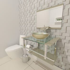 - Bancada de Vidro: 8 mm - Cuba de Vidro: 12 mm - Prateleira Bancada: 6 mm - Espelheira: 3 mm