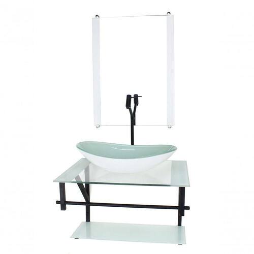 - Bancada de vidro com furo para instalação da torneira (3,5cm diâmetro) e da válvula click (4,5cm diâmetro)