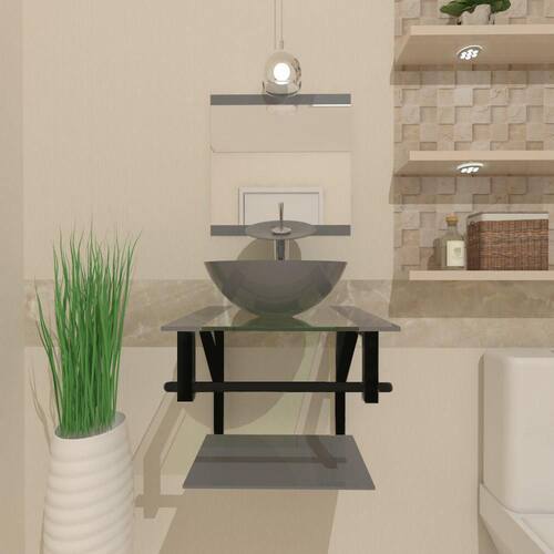Gabinete de vidro para banheiro 40cm com torneira cascata prata Os nossos gabinetes são indicados para projetos arrojados e de muito bom gosto, além de valorizar o seu ambiente com sofisticação em uma decoração de alto padrão, ele consegue usufruir das vantagens que o vidro proporciona e gerar uma durabilidade indiscutível, sem contar que com as várias opções de cores, você sempre poderá encontrar uma cor perfeita para o seu banheiro. Os vidros são pintados com tinta de alta performance, o que lhe garante a permanência da cor . Na compra deste super combo 2 em 1, você compra de uma só vez, o gabinete e a torneira cascata, de forma mais fácil, mais rápido e mais barato. Dados técnicos Itens inclusos: - bancada de vidro com furo para torneira 3,5cm diâmetro e válvula click 4,5cm diâmetro ; - cuba de vidro; - espelheira espelho ; - estrutura e porta toalha de aço carbono com pintura eletrostática preta; - kit parafusos completo para instalação; - prateleira de vidro da bancada; - torneira monocomando de vidro; - válvula click. Dimensões: - bancada de vidro: 40 x 40cm largura x profundidade ; - cuba de vidro : 30cm diâmetro; - prateleira da bancada: 40 x 18cm largura x profundidade ; - espelheira espelho : 40 x 40cm largura x altura ; - porta toalha: 40 cm largura ; - válvula click: 1 1/4 Espessuras: - bancada de vidro: 8mm; - cuba de vidro: 10mm; - espelheira espelho : 3mm; - prateleira da bancada: 5mm; Dados técnicos torneira Itens inclusos: 01 torneira monocomando, 02 mangueiras flexíveis para entrada de água quente e fria e o kit de acessórios para fixação do produto. Material: liga metálica cobre e zinco cromada com acabamento em vidro. Conexão de entrada: 1/2 polegada. Altura total da torneira: 30,9 cm. Altura da queda dágua: 18,4 cm. Pressão mínima da água: recomenda-se uma pressão de pelo menos 5mtc metros de coluna dágua para melhor performance do produto. Temperatura máxima da água: deve-se evitar fluxo de água quente acima de 80º c para não danificar as mangueiras. Montagem: montagem e instalação não inclusa na venda ou preço do produto, elas são de inteira responsabilidade do cliente. Instalação da torneira: o kit com os acessórios necessários para sua fixação encontram-se dentro da embalagem, assim como as duas mangueiras flexíveis para conexão nas saídas de água quente e fria na parede. Lembre-se que o aquecimento da água deve ser realizado através de aquecedor solar, a gás ou elétrico antes da instalação da torneira. Para os casos onde há apenas água fria, essa torneira é igualmente recomendada, bastando apenas adquirir em qualquer loja de material para construção um t plástico ou metálico na saída de água da parede, ao qual seriam conectadas ambas mangueiras que acompanham o produto. : 12 meses conforme política de troca e devoluções . Montagem: montagem e instalação não inclusa na venda ou preço do produto, elas são de inteira responsabilidade do cliente. Imagens ilustrativas. Marca: Não Informado