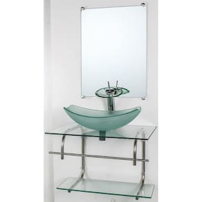 Gabinete de vidro para banheiro inox 60cm cuba oval chanfrada incolor Os nossos gabinetes são indicados para projetos arrojados e de muito bom gosto, além de valorizar o seu ambiente com sofisticação em uma decoração de alto padrão, ele consegue usufruir das vantagens que o vidro proporciona e gerar uma durabilidade indiscutível, sem contar que com as várias opções de cores, você sempre poderá encontrar uma cor perfeita para o seu banheiro. Itens inclusos: - bancada de vidro com furo para instalação da torneira 3,5cm diâmetro e da válvula click 4,5cm diâmetro ; - cuba de vidro oval chanfrada; - espelho; - estrutura e porta toalha de inox, esse suporte não enferruja e tem alta resistência a umidade; - kit parafusos completo para instalação; - prateleira de vidro da bancada; - válvula click. Dimensões: - bancada de vidro: 60 x 45cm largura x profundidade ; - cuba de vidro oval chanfrada: 46 x 31cm comprimento x largura ; - prateleira bancada: 60 x 25cm largura x profundidade ; - espelho: 60 x 45cm largura x altura ; - porta toalha: 60cm largura ; - válvula: 1 1/4. Espessuras: - bancada de vidro: 8mm; - cuba de vidro: 10mm; - prateleira bancada: 6mm; - espelho: 3mm. : 12 meses conforme política de troca e devoluções . Atenção: preço referente somente ao gabinete, não acompanha torneira. Montagem: montagem e instalação não inclusa na venda ou preço do produto, elas são de inteira responsabilidade do cliente. Imagens ilustrativas.