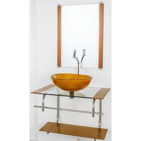 Gabinete de vidro para banheiro inox 60cm cuba redonda dourado real Os nossos gabinetes são indicados para projetos arrojados e de muito bom gosto, além de valorizar o seu ambiente com sofisticação em uma decoração de alto padrão, ele consegue usufruir das vantagens que o vidro proporciona e gerar uma durabilidade indiscutível, sem contar que com as várias opções de cores, você sempre poderá encontrar uma cor perfeita para o seu banheiro. Itens inclusos: - bancada de vidro com furo para instalação da torneira 3,5cm diâmetro e da válvula click 4,5cm diâmetro ; - cuba de vidro redonda; - espelho; - estrutura e porta toalha de inox, esse suporte não enferruja e tem alta resistência a umidade; - kit parafusos completo para instalação; - prateleira de vidro da bancada; - válvula click. Dimensões: - bancada de vidro: 60 x 45cm largura x profundidade ; - cuba de vidro redonda: 35cm diâmetro ; - prateleira bancada: 60 x 25cm largura x profundidade ; - espelho: 60 x 45cm largura x altura ; - porta toalha: 60cm largura ; - válvula: 1 1/4. Espessuras: - bancada de vidro: 8mm; - cuba de vidro: 10mm; - prateleira bancada: 6mm; - espelho: 3mm. : 12 meses conforme política de troca e devoluções . Atenção: preço referente somente ao gabinete, não acompanha torneira. Montagem: montagem e instalação não inclusa na venda ou preço do produto, elas são de inteira responsabilidade do cliente. Imagens ilustrativas.