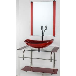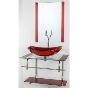 Gabinete de vidro para banheiro inox 60cm cuba oval chanfrada vermelho cereja Os nossos gabinetes são indicados para projetos arrojados e de muito bom gosto, além de valorizar o seu ambiente com sofisticação em uma decoração de alto padrão, ele consegue usufruir das vantagens que o vidro proporciona e gerar uma durabilidade indiscutível, sem contar que com as várias opções de cores, você sempre poderá encontrar uma cor perfeita para o seu banheiro. Itens inclusos: - bancada de vidro com furo para instalação da torneira 3,5cm diâmetro e da válvula click 4,5cm diâmetro ; - cuba de vidro oval chanfrada; - espelho; - estrutura e porta toalha de inox, esse suporte não enferruja e tem alta resistência a umidade; - kit parafusos completo para instalação; - prateleira de vidro da bancada; - válvula click. Dimensões: - bancada de vidro: 60 x 45cm largura x profundidade ; - cuba de vidro oval chanfrada: 46 x 31cm comprimento x largura ; - prateleira bancada: 60 x 25cm largura x profundidade ; - espelho: 60 x 45cm largura x altura ; - porta toalha: 60cm largura ; - válvula: 1 1/4. Espessuras: - bancada de vidro: 8mm; - cuba de vidro: 10mm; - prateleira bancada: 6mm; - espelho: 3mm. : 12 meses conforme política de troca e devoluções . Atenção: preço referente somente ao gabinete, não acompanha torneira. Montagem: montagem e instalação não inclusa na venda ou preço do produto, elas são de inteira responsabilidade do cliente. Imagens ilustrativas.