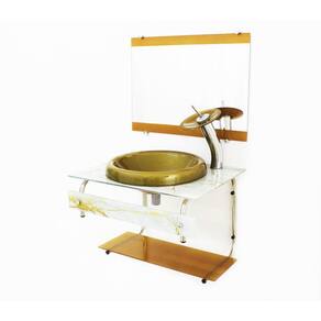Gabinete De Vidro Para Banheiro 60cm Inox - Mármore Branco Dourado Os nossos gabinetes são indicados para projetos arrojados e de muito bom gosto, além de valorizar o seu ambiente com sofisticação em uma decoração de alto padrão, ele consegue usufruir das vantagens que o vidro proporciona e gerar uma durabilidade indiscutível, sem contar que com as várias opções de cores, você sempre poderá encontrar uma cor perfeita para o seu banheiro. Utilizamos impressão em alta definição, garantindo com que as cores impressas não se deformem com o passar dos anos. Os vidros são pintados com tinta de alta performance o que lhe garante a permanência da cor . Dados técnicos Itens inclusos: - bancada de vidro com furo para torneira 3,5cm diâmetro ; - cuba de vidro chapéu; - espelho; - estrutura de inox tubular; - kit parafusos completo para instalação; - prateleira de vidro da bancada; - testeira de vidro; - válvula click. Dimensões: - bancada de vidro: 60 x 45cm largura x profundidade ; - cuba de vidro chapéu: 42cm diâmetro ; - prateleira da bancada: 60 x 25cm largura x profundidade ; - espelho: 60 x 45cm largura x altura ; - testeira de vidro: 60 x 7cm largura x altura ; - válvula click: 1 1/4 Espessuras: - bancada de vidro: 8mm; - cuba de vidro: 12mm; - espelho: 3mm; - prateleira da bancada: 6mm; - testeira de vidro: 6mm; : 12 meses conforme política de troca e devoluções . Atenção: preço referente somente ao gabinete, não acompanha torneira. Montagem: montagem e instalação não inclusa na venda ou preço do produto, elas são de inteira responsabilidade do cliente. Imagens ilustrativas. Marca: Não Informado
