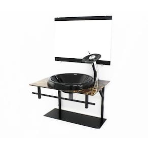 Itens inclusos: - bancada de vidro com furo para torneira (3,5cm diâmetro); - cuba de vidro chapéu; - espelho; - estrutura e porta toalha de aço eletrostático; - kit parafusos completo para instalação; - prateleira de vidro da bancada; - válvula click.