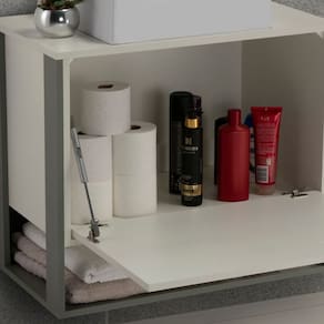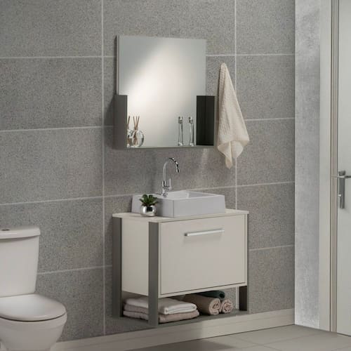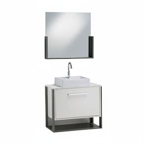 Gabinete e Espelheira 90cm Inspira Design Cinza/Branco