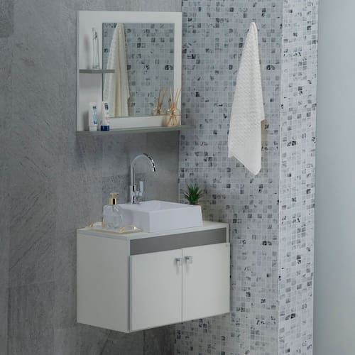 Seu banheiro merece um toque especial! O Meu Canto Modelo 5 traz um design suspenso que combina aconchego e um charme único. O balcão (40cm altura x 60cm largura x 32cm profundidade) organiza seus itens, enquanto a espelheira (50cm altura x 60cm largurax 8cm profundidade) completa o conjunto com beleza. Crie o seu refúgio particular com este modelo cheio de personalidade Acabamento da Cuba: Alto Brilho Acabamento da Porta: BP Acabamento da Prateleira: BP Acompanha Cuba: Sim Acompanha Manual de Instalação: Não Acompanha Parafusos Para Fixação Na Parede: Sim Acompanha Válvula: Não Ambiente Principal: Banheiro codigo_ean: 7900288251404 Comprimento da Prateleira: 60 cm Cor: Cinza/Branco Cor da Cuba: Branco Cor do Produto: Cinza/Branco Escala de Brilho: Acetinado Escala de Brilho da Porta: Semi-Fosco Escala de Brilho da Prateleira: Semi-Fosco Espessura da Prateleira: 1,5 cm Formato da Cuba: Quadrado Furação para Cuba e Torneira: Não Itens Inclusos: 1 Gabinete, 1 Espelheira e 1 Cuba Linha ou Coleção: Meu Canto Manual de Especificação Técnica: https://product-hub-prd.madeiramadeira.com.br/869483970/documents/1b03ad1e-9379-466b-935b-1ca47704f89f3250351666417592514952552.pdf Manual de Montagem e Instalação: https://product-hub-prd.madeiramadeira.com.br/869483970/documents/5457f5ce-c1c2-45fa-b5e6-a02ad0e75cda874095e1cd6764ad1758568655.pdf Marca: Eco Móveis Material da Cuba: Mármore Sintético Material da Porta: MDP Material da Prateleira: MDP Material do Puxador da Porta: Plástico Material do Tampo: MDP Material Principal: MDP Medida da Cuba (C x L x P): 9 x 32 x 30 Necessita Montagem: Não Origem do Produto: Nacional Peso: 16,3 kg Peso Máximo por Prateleira: 30 kg Possui Espelhos: Sim Possui Nichos: Não Possui Pés: Suspenso Possui Portas: Sim Possui Prateleiras: Sim Possui Recorte No Tampo Para Cuba: Não Possui Recorte No Tampo Para Misturador: Não Possui Sifão: Não Possui Tampo: Sim Produto Montado: Não Recomendações de Uso, Manutenção e Limpeza: Limpar com pano úmido ou com alcool Resistente à Chuva: Não Sapatas Niveladoras: Não Suporta Até (kg): 50 kg Tipo de Cuba: Apoio Tipo de Dobradiça/Corrediça da Porta: Metálica Tipo de Gabinete: Gabinete Suspenso Tipo de Móvel para o Banheiro: Gabinete de Banheiro Tipo de Porta: Abrir Tipo de Puxador da Porta: Externo Válvula indicada: padrão Marca: Não Informado