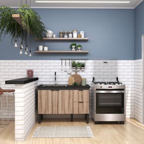 A linha de armários para cozinha Colibri, da Cozimax, possui estilo simples e design moderno, fabricado com chapas de madeira, possui um amplo espaço interno, dois gavetões com puxadores exclusivos em estilo minimalista e pés na cor preta com regulagem de altura.