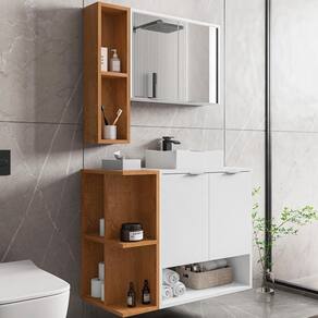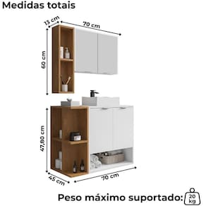 Cor: Multicolorido | Tonalidade: Multicolorido | Produto: Conjunto de banheiro | Peso do produto: 33 | Altura: 60 | Largura: 70 | Material: MDP e mármore sintético. Cor: Branco Naturalle
