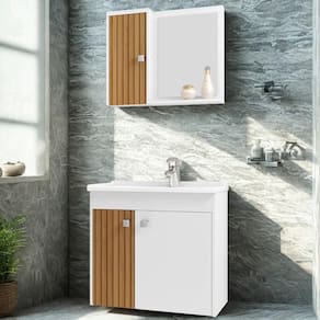 Cor: Multicolorido | Tonalidade: Multicolorido | Produto: Conjunto banheiro | Altura: 54 | Largura: 59 | Material: MDF | Peso do produto: 19 Cor: Branco Ripado