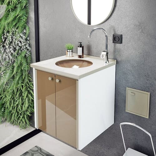 Transforme seu ambiente com um conjunto que une design sofisticado e alta qualidade. O gabinete com tampo em porcelanato polido traz beleza, resistência e praticidade, enquanto o corpo em MDF Ultra maior resistência a umidade. Os puxadores metálicos com pintura eletrostática e as portas de vidro lapidadas oferecem durabilidade e sofisticação. A cuba moldada em vidro adiciona charme e segurança ao conjunto. O espelho de 3mm com moldura em alumínio eletrostático completa o visual moderno, garantindo reflexo nítido, resistência e fácil instalação perfeito para banheiros e lavabos. Acabamento: BP Altura do Conjunto: 49 cm Ambiente: null Ambiente Principal: Banheiro Cor: Bege / Branco Informação Complementar: 1x Gabinete para Banheiro 42cm Fenix Marmo Bege/Branco Largura: 42,6 cm Altura: 49 cm Peso: 15,315 kg Profundidade: 42,5 cm Necessita Montagem: Sim
