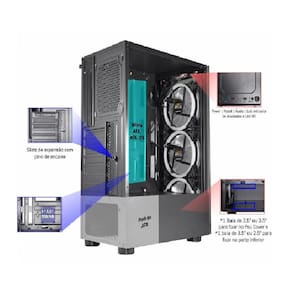 Gabinete gamer 10w5 painel vidro com 3fan - Gabinete gamer elite - cg-10w5 Psu cover Painel e chapa lateral de vidro temperado 3mm Power reset led indicador de atividades e led hd Gabinete gamer elite - cg-10w5 Especificações técnicas: Placa-mãe compatível: atx, micro atx , itx. Dimensões do chassi axlxp : 405180310mm Dimensões do gabinete axlxp : 428185318mm Altura da cpu cooler: 160mm Suporte para placa de vídeo: até 280mm Áudio ac97 Fontes de alimentação compatíveis: padrão atx Portas usb: 3 x 2.0 a cor azul neste modelo não Representa 3.0, todas entradas 2.0 Baias internas: 12.5ssd12.5 ou 3.5 i 12.5 Ou 3.5hd Slots de expansão: 07 Chassi 0,5mm Refrigeração: Frontal: 3 fans de 120x120mm aa-faf1 - incluso Traseira: 1 fan de 120x120mm - opcional Compatível com water cooler de 120mm traseiro Embalagem: Dimensões cxlxa : 475x225x400mm Quantidade: 01 peça por caixa Peso líquido: 3,55kg Peso bruto: 4,20kg Características gerais do produto: Material: metal : 90 Marca: Não Informado