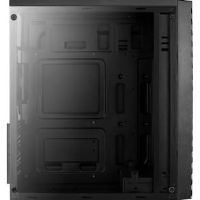 Gabinete Gamer Aerocool Atx Streak V1 Preto O Gabinete Gamer Aerocool ATX Streak V1 é uma caixa de torre média com um design LED RGB elegante no painel frontal. Vem com um painel lateral de acrílico completo para mostrar o interior da sua plataforma. Possuindo 18 modos de iluminação: 11 RGB de fluxo e 7 modos de cores estáticas. O interruptor de controle LED localizado convenientemente permite ajustar seus efeitos de iluminação para se adequar ao seu estilo e humor únicos.