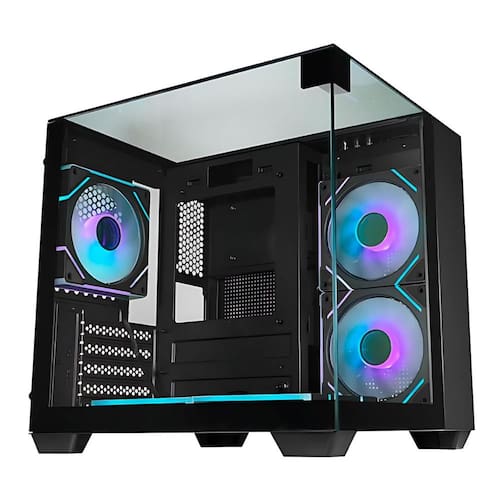 Marca: K-Mex Modelo: Aquário Visão Infinita 2 - CG01X2RH001CB0X Cor: Preto Material do Chassi: Aço 0,5mm Painel Frontal: Vidro temperado 3mm Painel Lateral Esquerdo: Vidro temperado 3mm Dimensões do Gabinete (AxLxP): 335mm x 275mm x 330mm Dimensões do Chassi (AxLxP): 330mm x 265mm x 330mm Compatibilidade Placa-mãe: Micro ATX, ITX Slots de Expansão: 05 Baias Internas: 1x 3.5`` (HD), 2x 2.5`` (SSD) Portas USB Painel Frontal: 2x USB 2.0, 1x USB 3.0 Áudio Painel Frontal: HD Áudio (Entrada e Saída) Fonte de Alimentação Suportada: Padrão ATX (Não inclusa) - Posicionada na parte traseira/lateral. Comprimento Máximo da Placa de Vídeo: Até 320mm (sem ventoinhas laterais instaladas) Altura Máxima do CPU Cooler: Até 155mm Ventilação Suportada (Fans Não Inclusos): Superior: 2x 120mm Traseira: 1x 120mm Lateral (interna): 2x 120mm Water Cooler Suportado: Traseira: 120mm | Lateral (interna): 240mm Filtros de Poeira: Superior (magnético), Inferior Peso Líquido: Aprox. 4,1 kg Peso Bruto: Aprox. 5,1 kg