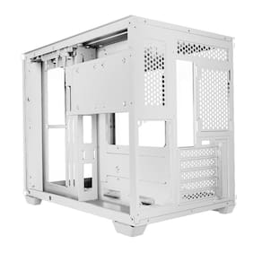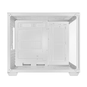 Com acabamento branco e tampas de vidro temperado frontal e lateral, este gabinete combina elegância e funcionalidade, destacando seu hardware de forma impactante.