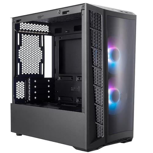 Gabinete Gamer Cooler Master MasterBox MB320L ARGB, Mini Tower, ARGB, com FAN, Lateral em Vidro - MCB-B320L-KGNN-S02 Cor: Preto O MasterBox MB320L ARGB é um gabinete para PC Micro-ATX com um ventilador ARGB pré-instalados e ventilação de malha em favo de mel em ambos os lados do painel frontal do DarkMirror. O painel frontal do DarkMirror é um pouco mais escuro para acentuar o contraste dos ventiladores ARGB pré-instalados atrás dele, destacando seus melhores recursos. Um alto potencial para construções refrigeradas a ar e refrigeradas a líquido inclui ventilação frontal, superior e traseira, com a possibilidade de montar ventiladores e radiadores adicionais. Mantendo os princípios premiados da série MB, a versatilidade é combinada com a apresentação para garantir que qualquer sistema de jogos incorporado no MasterBox MB320L ARGB tenha a mesma performance que ele.
