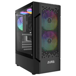 Projetado para compatibilidade com placas-mãe Mini-ITX, Micro-ATX e ATX, o Aura GC7 oferece flexibilidade na montagem, acomodando placas de vídeo de até 300mm e air coolers de até 155mm de altura. Ele já vem com três fans ARGB de 120mm pré-instaladas, proporcionando um resfriamento eficiente e um toque visual impressionante. Seu suporte para watercoolers de até 120mm na traseira permite ainda mais opções para quem deseja um sistema de resfriamento líquido.