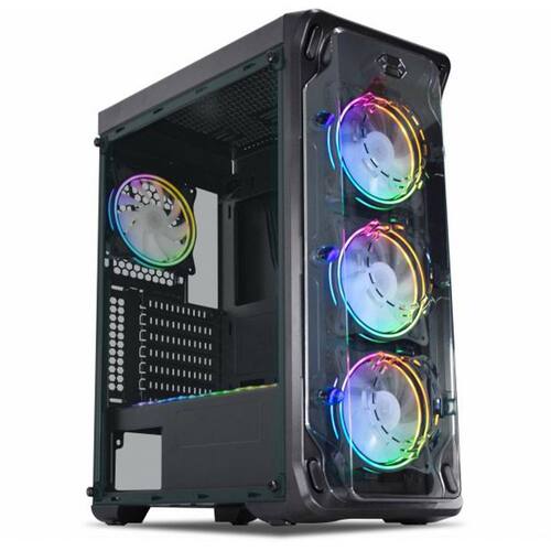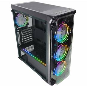 Gabinete Gamer K-Mex, A1B1 Trooper, Argb, Atx, Preto - Cg01B1Rh001Cb0X Marca: k-mex modelo: cg01b1rh001cb0x Especificações: Chassi 0,5mmslots de expansão: 07portas usb: 2 x 2.0 1 x 3.0baias internas: 4 x 2.5 2 x 3.5 ou 2.5 tool lesssuporte para placa de vídeo: até 400mmaltura da cpu cooler: 160mmplacas-mãe compatíveis: atx, micro atx, itxfontes de alimentação compatíveis: padrão atxdimensões do chassi axlxp : 445x205x400mmdimensões do gabinete axlxp : 503x208x445mm Ventilação: Fans 120x120mm : não inclusos superior: 02 também possui furação para fans de 140mm traseira: 01 interna: 02 Fans inclusos 120x120mm :03 fans rgb rainbow rítmico + barra de leds de 300mm kit aadak1 também possui furação para fans de 140mm