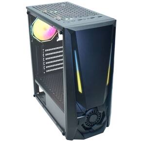 O gabinete gamer K-MEX Jaeger 1 CG-01TJ foi projetado para entregar um setup com visual moderno e montagem organizada, trazendo lateral em vidro temperado de 4mm para exibir os componentes, barra de LED RGB no painel frontal e PSU cover para esconder a fonte e melhorar o acabamento interno. Compatível com placas-mãe ATX, Micro ATX e ITX, este gabinete gamer oferece espaço para placa de vídeo de até 300mm, suporte a múltiplas ventoinhas opcionais e compatibilidade com water cooler (120mm traseiro ou 240mm superior), sendo uma escolha prática para quem busca um gabinete gamer robusto e com iluminação RGB integrada.