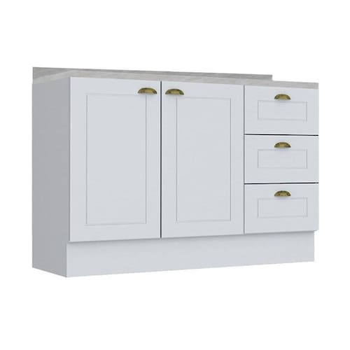 Gabinete de Cozinha Modulado Henn Americana c/ 2 Portas 3 Gavetas 120cm + Tampo - C o r Branco