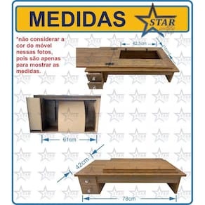Medidas: Comprimento móvel fechado: 78cm / comprimento móvel aberto: 112cm Altura: 22cm Largura: 42cm Abertura da máquina: 42,5x18cm Encaixe entre um pino e o outro: 24,5cm