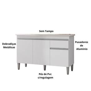 Características do ProdutoMaterial da Estrutura: 100% MDPPeso Suportado: 28 Kg distribuídosPossui Tampo: SimAcabamento: Pintura UVPossui Portas: SimQuantidade de Portas: 3 PortasMaterial da Porta: MDPTipo de Porta: ConvencionalPossui Gavetas: SimPossui Puxadores: SimTipo de Puxador: CavaMaterial dos Puxadores: PVCPossui Pés: Sim