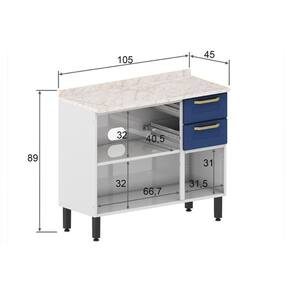 Gabinete P- Pia Cozinha Balcão C- Tampo Colors 6114 C- 3 Portas E 2 Gavetas 105cm Branco-vermelho - Bertolini