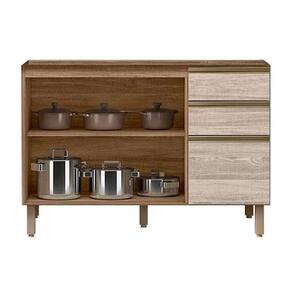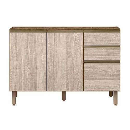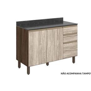 Balcão de Cozinha Kali c/ 2 Portas e 3 Gavetas s/ Tampo 120cm Amêndoa/Arezzo - Nicioli