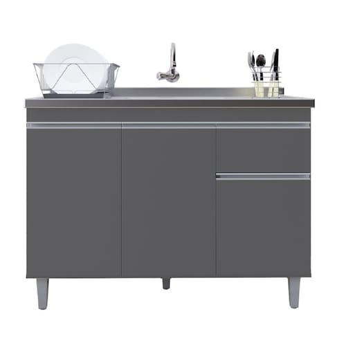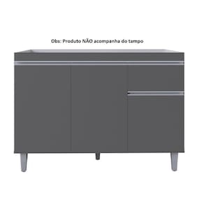 Gabinete P/ Pia de Inox 120cm Cinza 3 Portas 1 Gaveta S/ Tampo - Pop