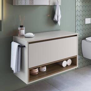 Transforme o visual do seu banheiro com este gabinete moderno e charmoso, ideal para quem busca praticidade e estilo. Com toalheiro em aço com pintura epóxi, 01 porta basculante e 01 nicho espaçoso para organizar todos os seus itens, ele une beleza e praticidade. Seu design com cores modernas e sofisticadas proporciona o toque de requinte que o ambiente merece. O grande diferencial é o porta-toalhas pode ser instalado no lado direito ou esquerdo, sem a necessidade de furar paredes. Não acompanha cuba. Este móvel chegará em sua casa separado em 01 Volume.
